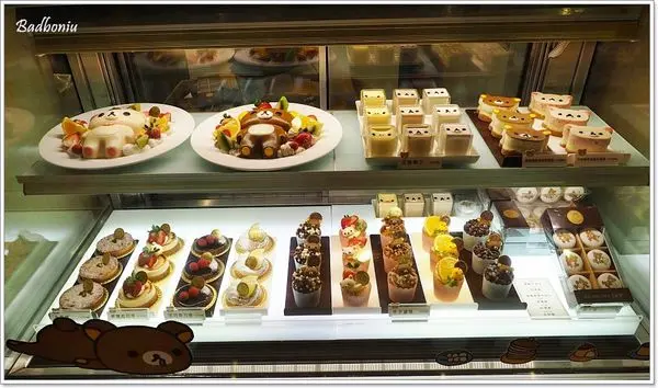 除了被拉拉熊包圍讓人感到幸福外,這一整個都是拉拉熊蛋糕的甜點櫃,更是讓人想尖叫吧!!