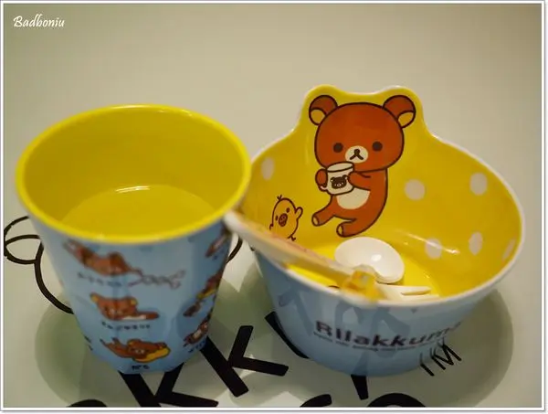 兒童餐具上的拉拉熊LOGO。