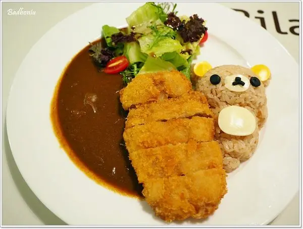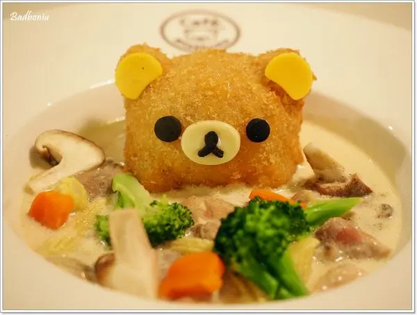 這是另一道拉拉熊造型比較明顯的白醬雞肉飯。白醬的本身還算OK,但是因為拉拉熊的頭皮有先炸過,因此上桌時及吃起來時有濃濃的油味,就不是那麼好吃了。