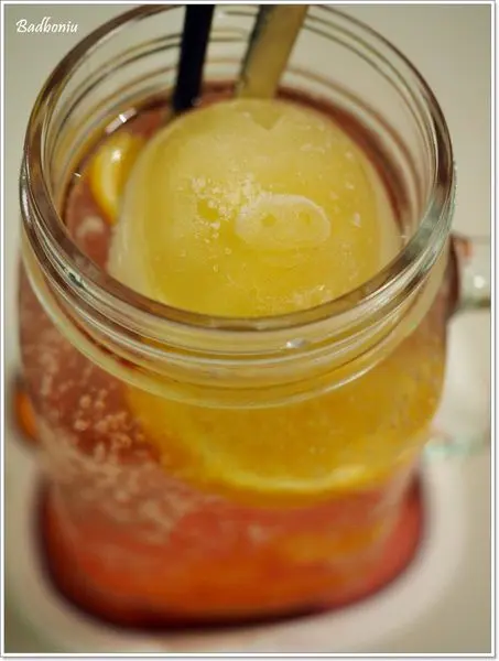 這一杯是葡萄柚柳橙氣泡飲,裡面會以造型冰塊(隨機);我們的拿到是小雞造型的冰塊,等冰塊融化之後,飲料也會比較入味。在日本跟這次的座位都是小雞,看來我們家跟小雞比較有緣