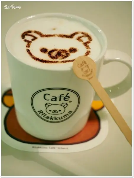這一杯是有拉拉熊圖樣的原味拿鐵,連杯墊、攪拌棒上也有拉拉熊。