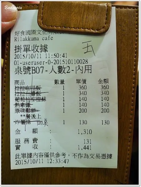雖然這種授權的店家,通常稱不上美食,但這個Rilakkuma cafe Taiwan 的餐點與點心,算是比較能接受的了,而且大家應該都是朝聖的心態來的吧。