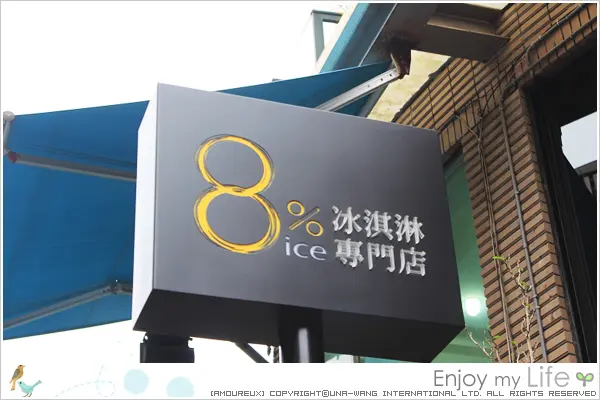 在永康街吃完「TEN屋」後,走到「8%冰淇淋專門店」來吃飯後甜點,起初看到他們家的冰淇淋,我一度與台南的蜷尾家冰淇淋搞混,究整體冰淇淋的外觀也太相似了,無論是冰淇淋殼還是霜淇淋上插的餅乾等