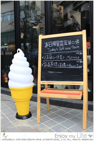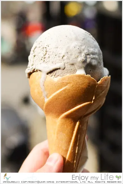 我選了雪塩黑糖霜淇淋,而朋友選了芝麻冰淇淋