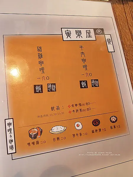 寅樂屋的餐點非常簡單,飲料甜品的選擇比正餐還多,咖哩分為牛肉或豬雞,主食可選米飯或是通心粉,還有一盤15元 非常迷你的小菜