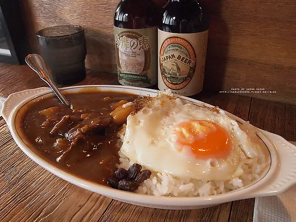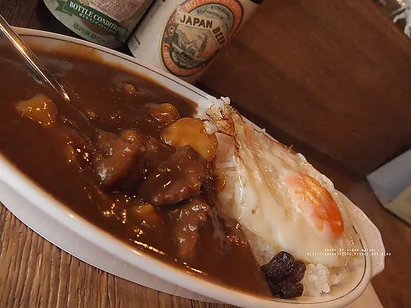 店裡座位不多,三個吧台座外加十個一般座位,還好吃碗咖哩不會花太多時間,翻桌率還算高牛肉咖哩飯+荷包蛋 $180
