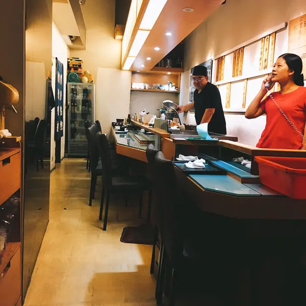 店裡空間也不大只有板前大概10幾個人的位置,店內就只有阿德師傅跟助手老闆娘(外場)