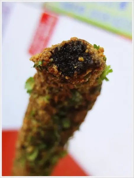 他的米血算是比較硬一點的口感,不是軟綿綿的綿密那種,