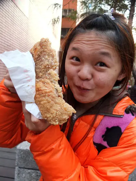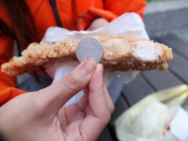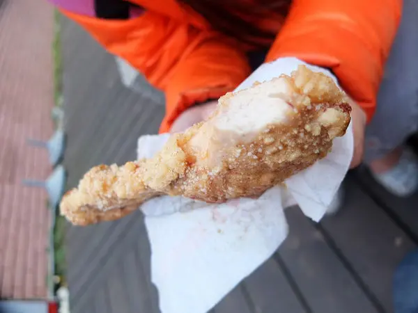 雞排的大小大概就是臉的長度大小,其實不算小啦!