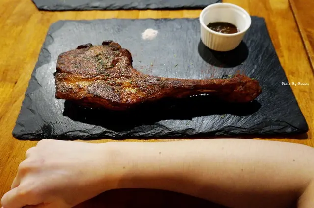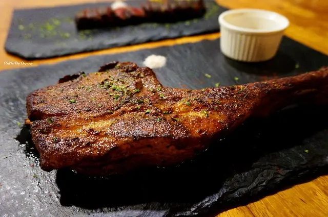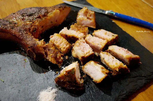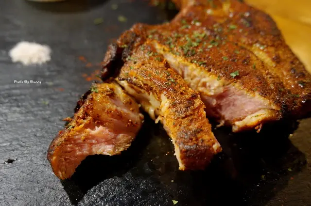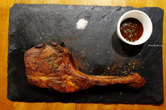 一旁的豬肋排醬或海鹽可以搭配來增添風味