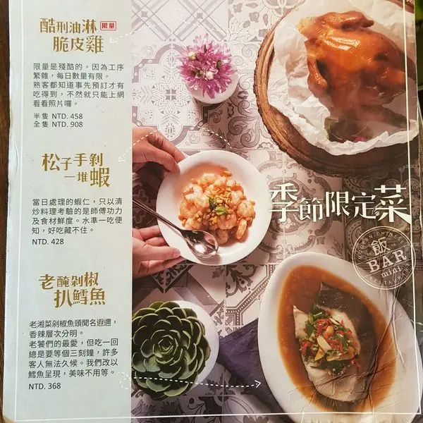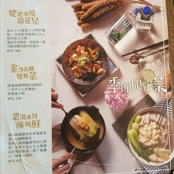菜單走一個圖文並茂路線,有提供配好的多人合菜,餐點需額外收取一成服務費。