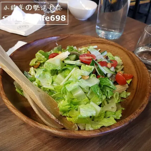 最後以木碗沙拉的方式呈現,生菜相當新鮮、富含水分,凱薩醬也很均勻的沾附到每一片生菜上。