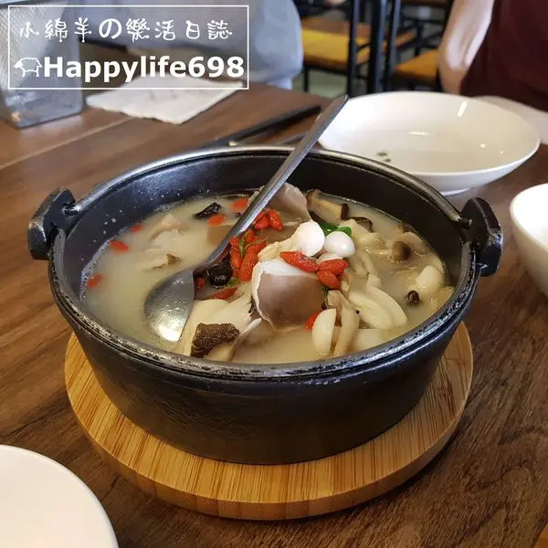 土雞肉非常多塊,肉質緊實,另外還加了腐皮和筍片,讓湯頭喝起來帶有淡淡的酸味,很是特別。