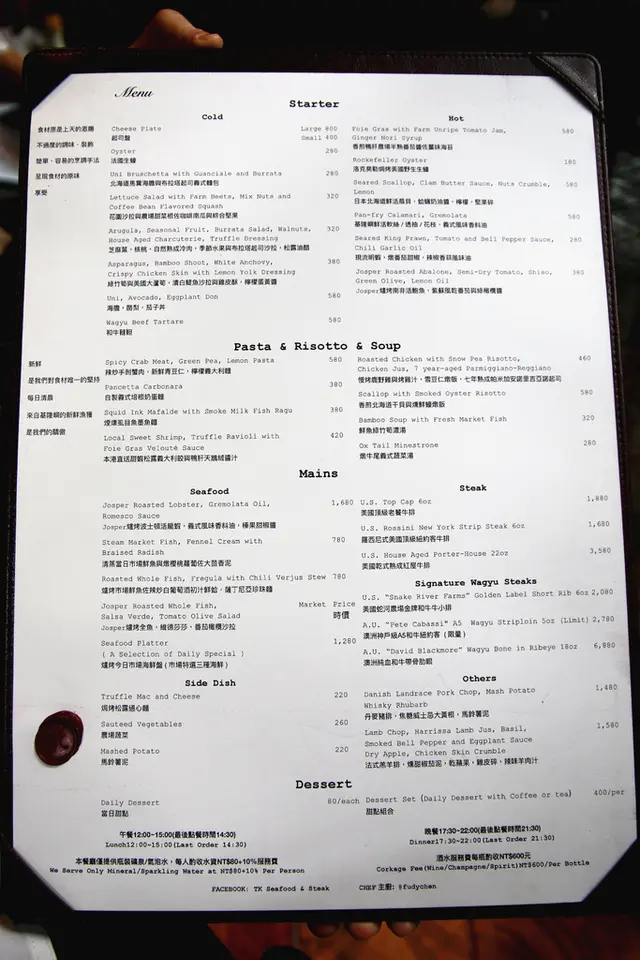 HOTEL PROVERBS TAIPEI 賦樂旅居 ─ TK Seafood & Steak