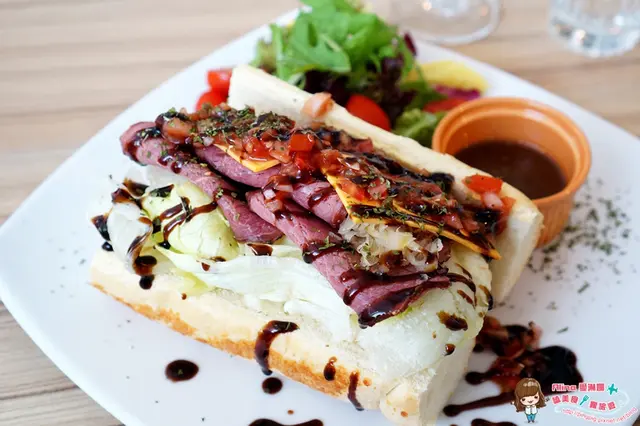四大片牛肉配上兩片起司和滿滿的油醋醬料 分量相當足夠