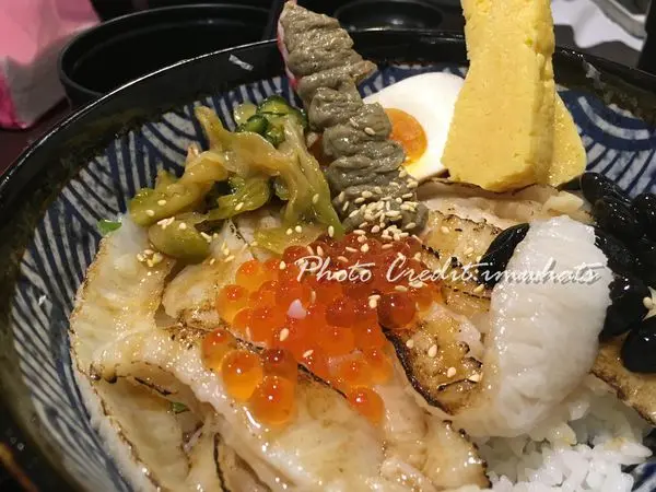 有滿滿的比目魚鰭邊肉,還有鮭魚卵,每一樣都好美味。