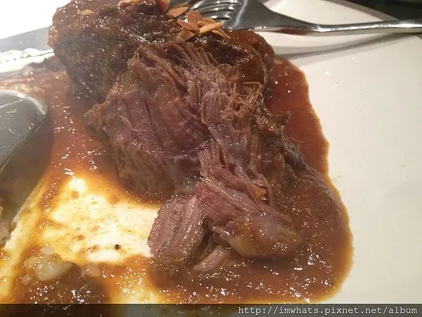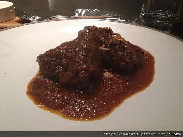 牛頰肉,兩大塊~咖哩和牛肉味道還蠻不同調的,感覺像是咖哩淋上去,沒有很入味。咖哩非常好吃,有點微微的苦味,是很有層次的味道。這兒的咖哩偏濃稠,應該是說有點像是咖哩泥般了~喜歡咖哩的人應該會很愛(對了,這跟日式咖哩的溫潤口感很不同)。