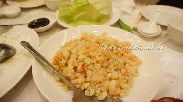 生菜蝦鬆,幾乎是除了烤鴨外的每桌必點之菜。