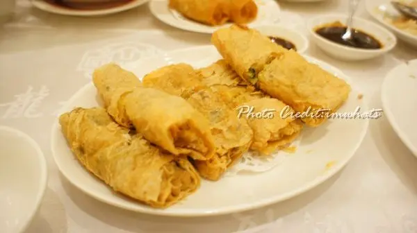 一行6人吃完上面的菜色後(還有未入鏡的鴨粥),飽到無力把這盤腐皮捲吃完。