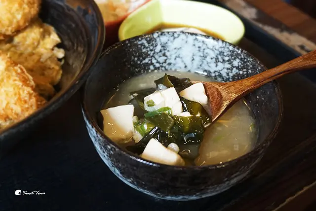 味增湯裡頭的料給的滿大氣的,而且還可以續,喝得好滿足。