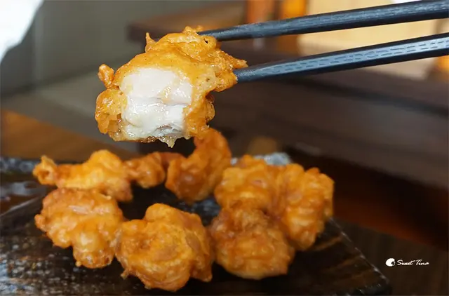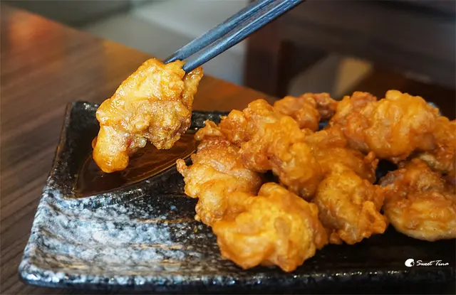 日式唐炸雞再以醬料做搭配,呈現不同的酸甜口感,單吃或是沾上醬都好吃,有不同風味呢。