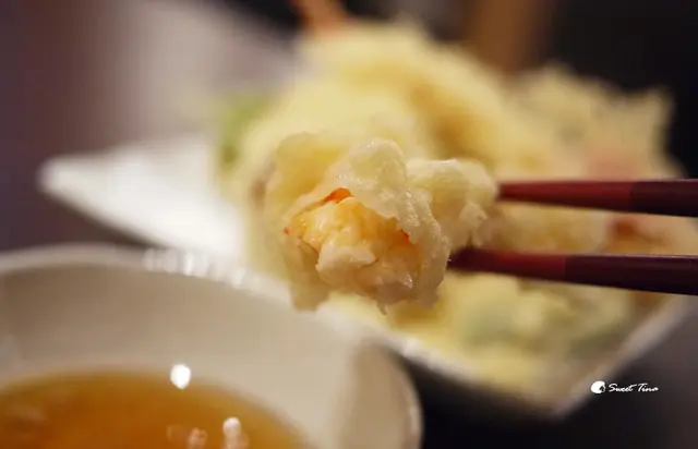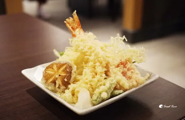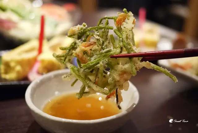 綜合天婦羅 - 有2隻炸蝦、香菇、鱚魚、水蓮、甜椒,青辣椒,炸的酥脆不油膩,食材也都非常新鮮可口呢。