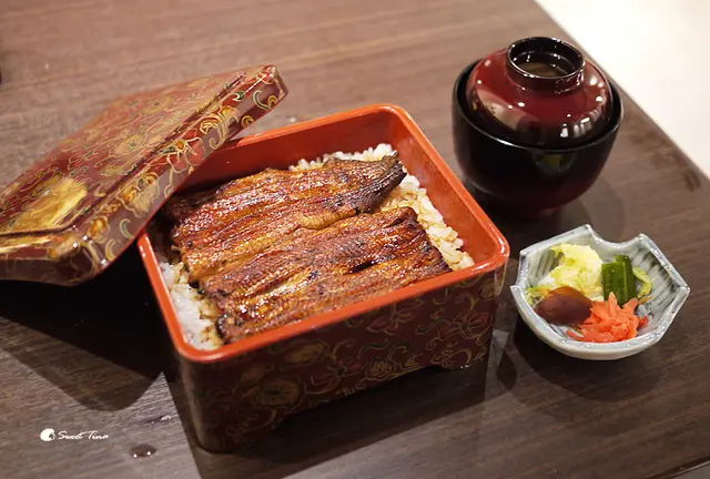 鰻魚重 - 除了一份鰻魚飯外還附了漬物、鰻肝湯,這份鰻魚飯吃下來其實就挺有飽足感的。