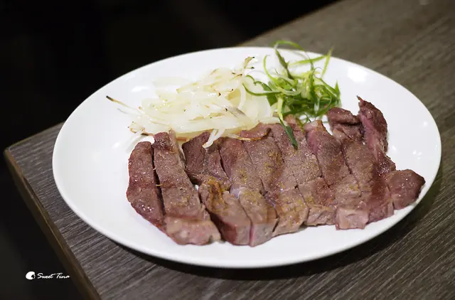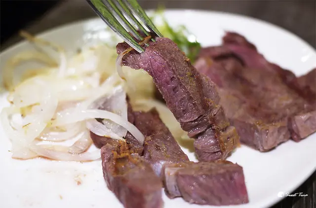 我們選擇的是二套火鍋贈送牛排,真的是一整塊的牛排呢,大約是七分熟的程度,咬起來口感還算適中,想多享受些吃肉的過癮,大家也可以選擇贈送牛排喔。