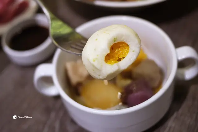 吃火鍋時我還挺喜歡吃這種會爆漿的丸子耶,咬下後噗刺的噴出內餡~超過癮,但很燙就是了,哈~