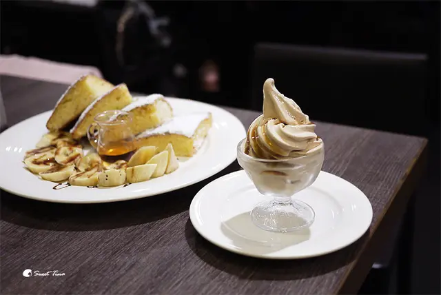 不過我覺得最好吃的搭配就是鬆餅+香蕉+奶茶冰淇淋,口感上是最契合的呢。