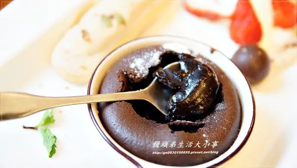 這熔岩蛋糕,我一直認為會太甜,不過吃起來還好