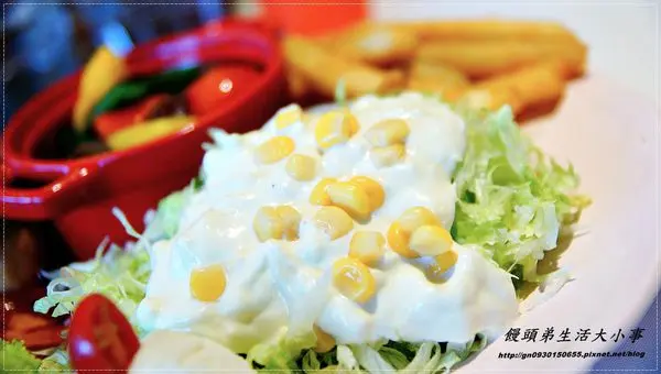生菜沙拉部分生菜吃起來好爽口~再加上美乃滋根玉米粒