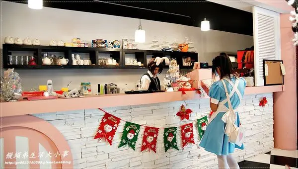 服務生是穿愛麗絲制服真的還蠻好看低。吧檯裡的調酒師還戴兔兒朵