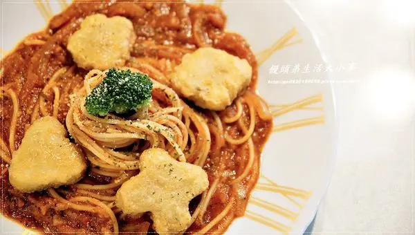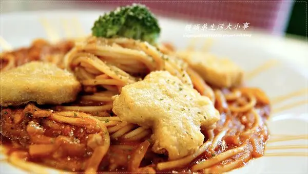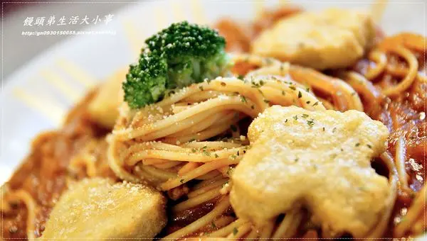 義大利麵上頭還灑上起司粉~讓麵條吃起來口感更優。麵條吃起來有咬勁