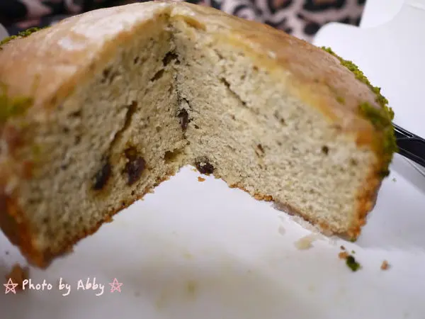 切開後裡面會看到許多酒釀葡萄及若隱若現的茶葉顆粒