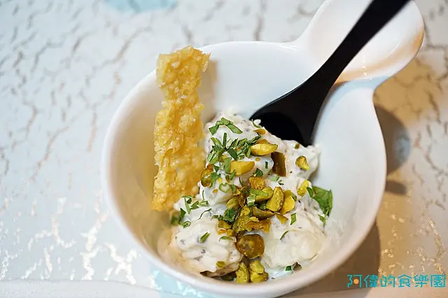 來到茶苑,在引領入座後即獻上開心果洋芋沙拉佐松露,讓松露油與松露醬獨特的雍容香氣,揭開怡人午後的序幕。