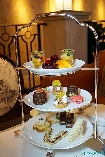 接著就是主角,三層式的下午茶點心盤。每款點心皆成雙成對,雙人套餐每個人每款都嚐得到。
