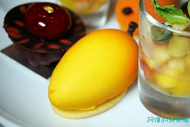 這是上層盤中我最喜歡的!外形就像顆芒果,原來它是小蛋糕