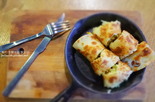 以鐵鍋裝呈蛋餅倒是很少見到,怎麼換了個容器就覺得看來特別好吃呢?