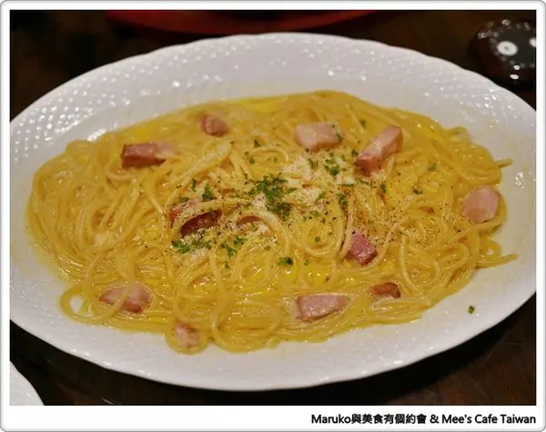 餐點的價格不是很高,而這款義大利麵,蛋香味大於白醬的香氣,蛋黃醬的味道飛常的濃郁,麵條吃起來有