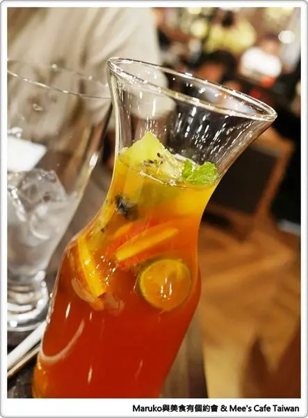 我們點了一壺水果茶其實份量還不小,裡面的是新鮮的水果除了切片蘋果、藍莓、奇異果、金桔等~