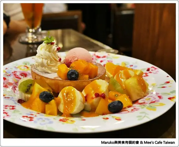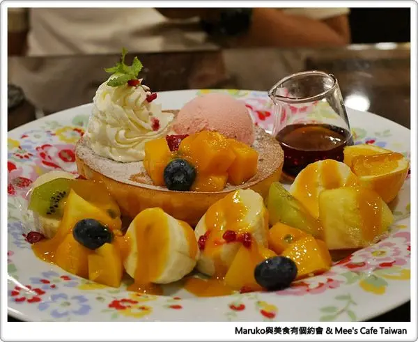 乾點綴,再淋上了新鮮的芒果醬,擺放在這個華麗的盤子上真的是快門按個不停。