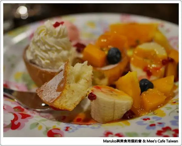 有一些不搭,但草莓冰淇淋本身還不錯吃,另外擺放上了新鮮芒果、香蕉、奇異果、藍莓,另外還加上了草莓