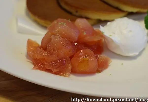 焦糖蘋果煎餅(160元)看起來很像葡萄柚的其實就是焦糖蘋果,吃起來已經完全不像蘋果了....非常入味的軟嫩啊!!!!