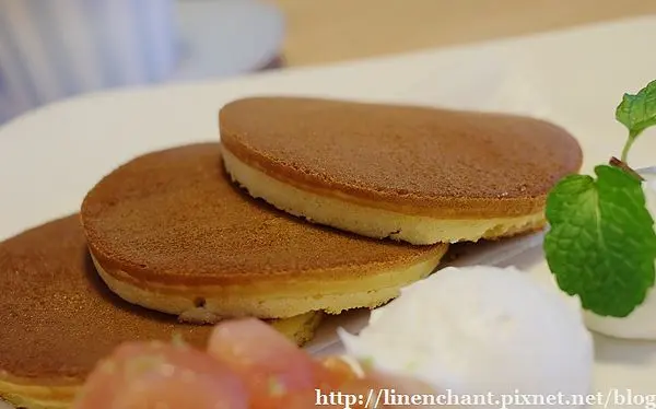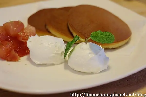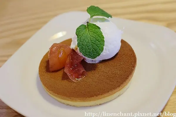 煎餅吃起來是很簡單的味道,很單純的蛋香氣....口感還蠻鬆軟的,配著焦糖蘋果吃還不錯唷!!!很有厚度的煎餅,吃完是會有飽足感的啦~~~