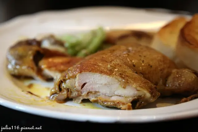 腿排烤的很嫩而且入味,皮下還塞了燉飯!
