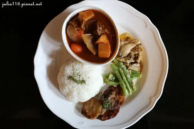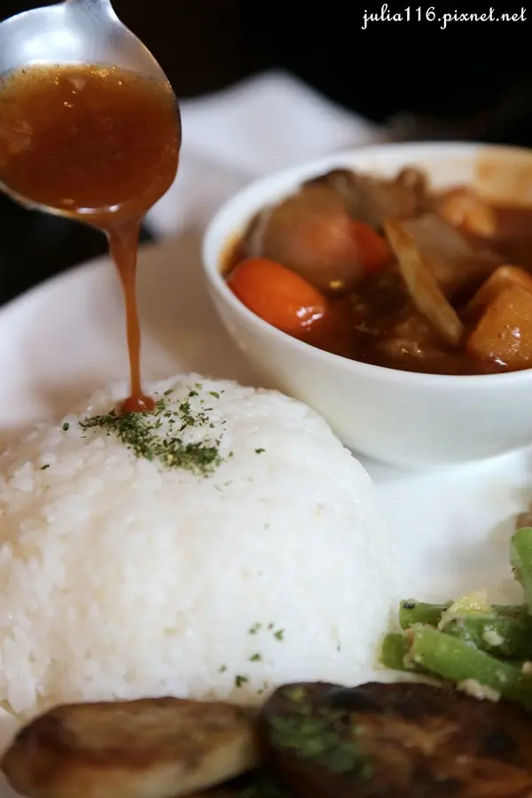說它是番茄牛肉飯比較貼切,吃不出什麼紅酒味道,牛肉燉的軟嫩好嚼,相當下飯!