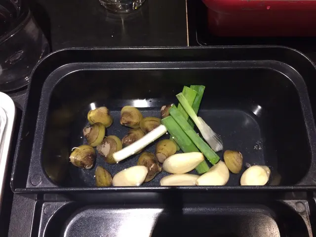 簡單的蜆蒜蔥三人組放入鍋中,因為富呷一方訴求無油料理,所以加入的是白開水而非高湯, 可能是因為桌子較高而椅子較低,除非起身不然是看不清楚湯鍋內容的