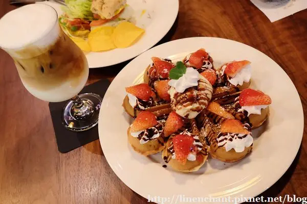 鬆餅烤的還不錯,吃起來外層很酥~可惜有些單薄.....吃起來就是OK但不覺得特別啦!!!