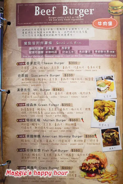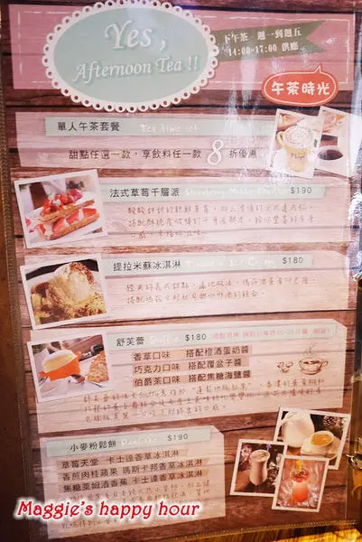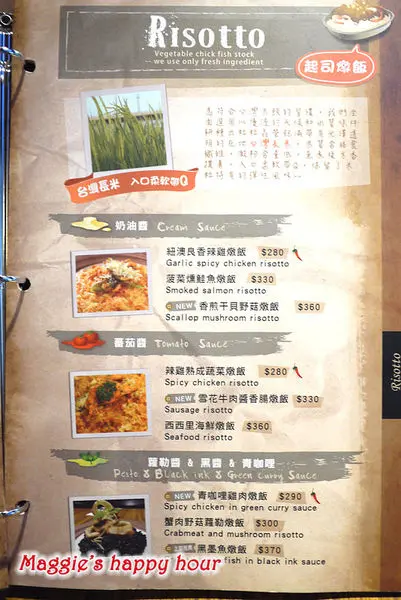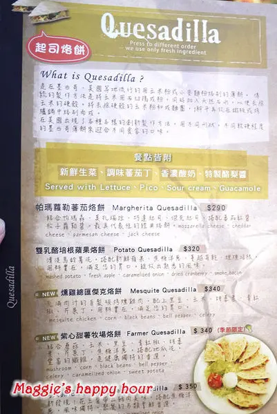 翻翻菜單看有什麼好吃的,這裡供應的大半就是義大利麵、燉飯、漢堡和早午餐,另外還有墨西哥料理裡幾道經典的美食,下午茶時段也有提供套餐組合。